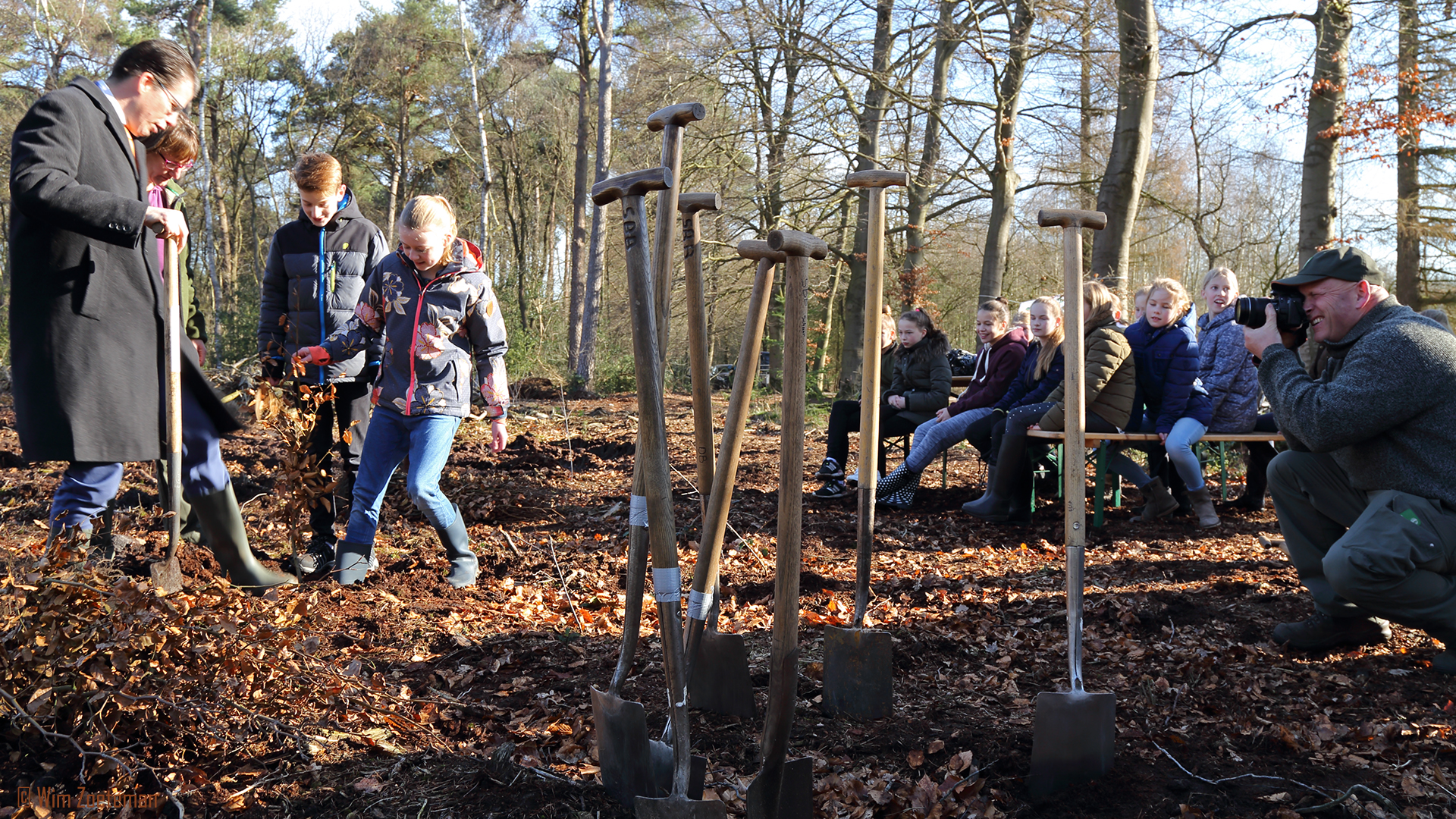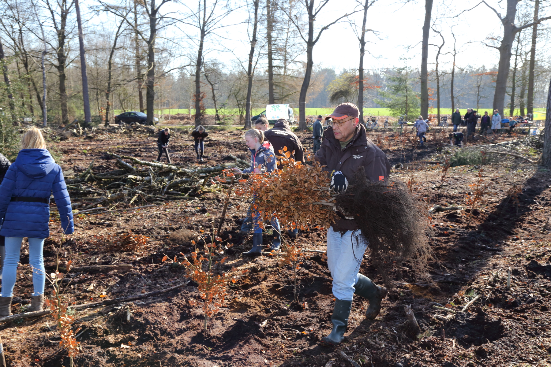 Na de onderbreking wordt er weer hard verder gewerkt. Als tegen het eind van de ochtend alle boompjes geplant zijn begint het grote tellen. Geen idee hoeveel kinderen het bij het rechte eind hadden, maar er wordt flink gejuicht om de officiële score van maar liefst 460! beuken. Dat mag een serieus bos heten.