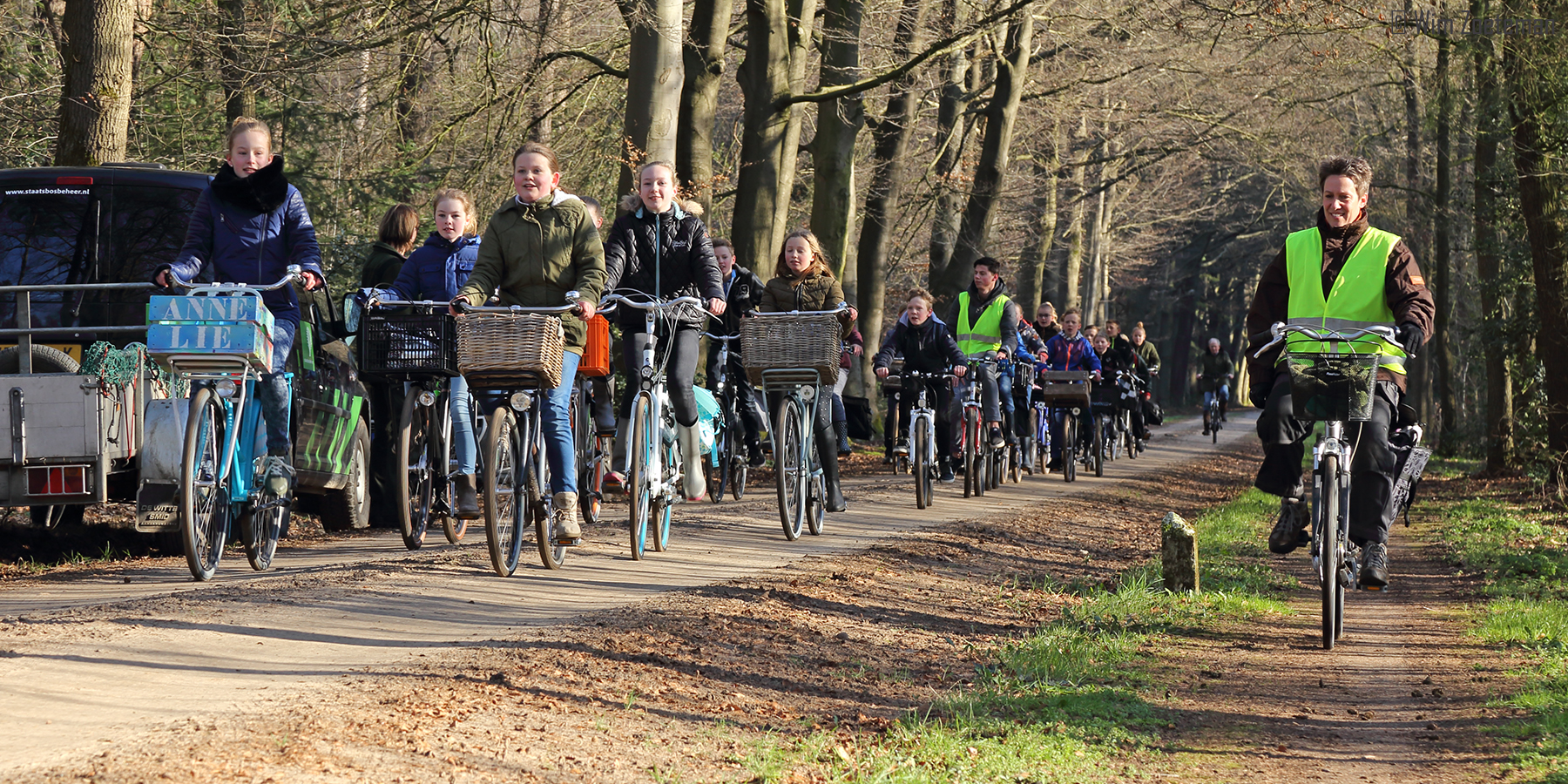 Juf Irma en de boswachters van de Achterhoek hebben echt hun best gedaan. Het perceel is strategisch uitgekozen, niet te ver om nog te kunnen fietsen maar wel echt diep in het bos. En niet ergens achteraf aan een obscuur paadje maar direct grenzend aan een goed begaanbare zandweg. Zo kunnen de planters tot in lengte van jaren hun aanplant blijven volgen.