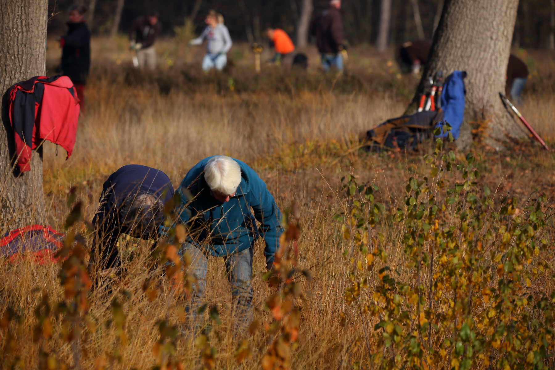 Tijdens de natuurwerkdag in het natuurgebied Beekvliet, heeft een grote groep vrijwilligers het Entelsveld onder handen genomen.