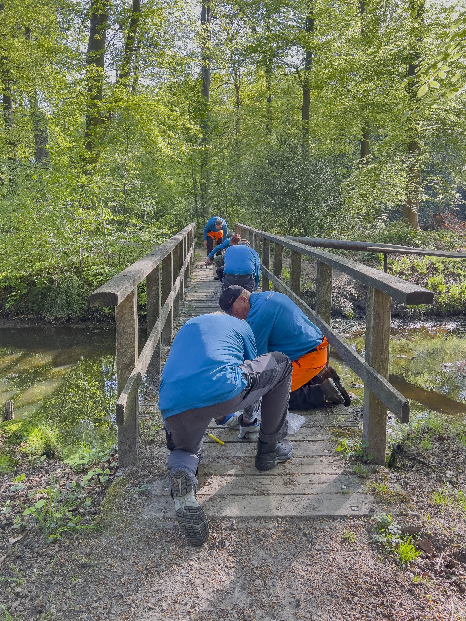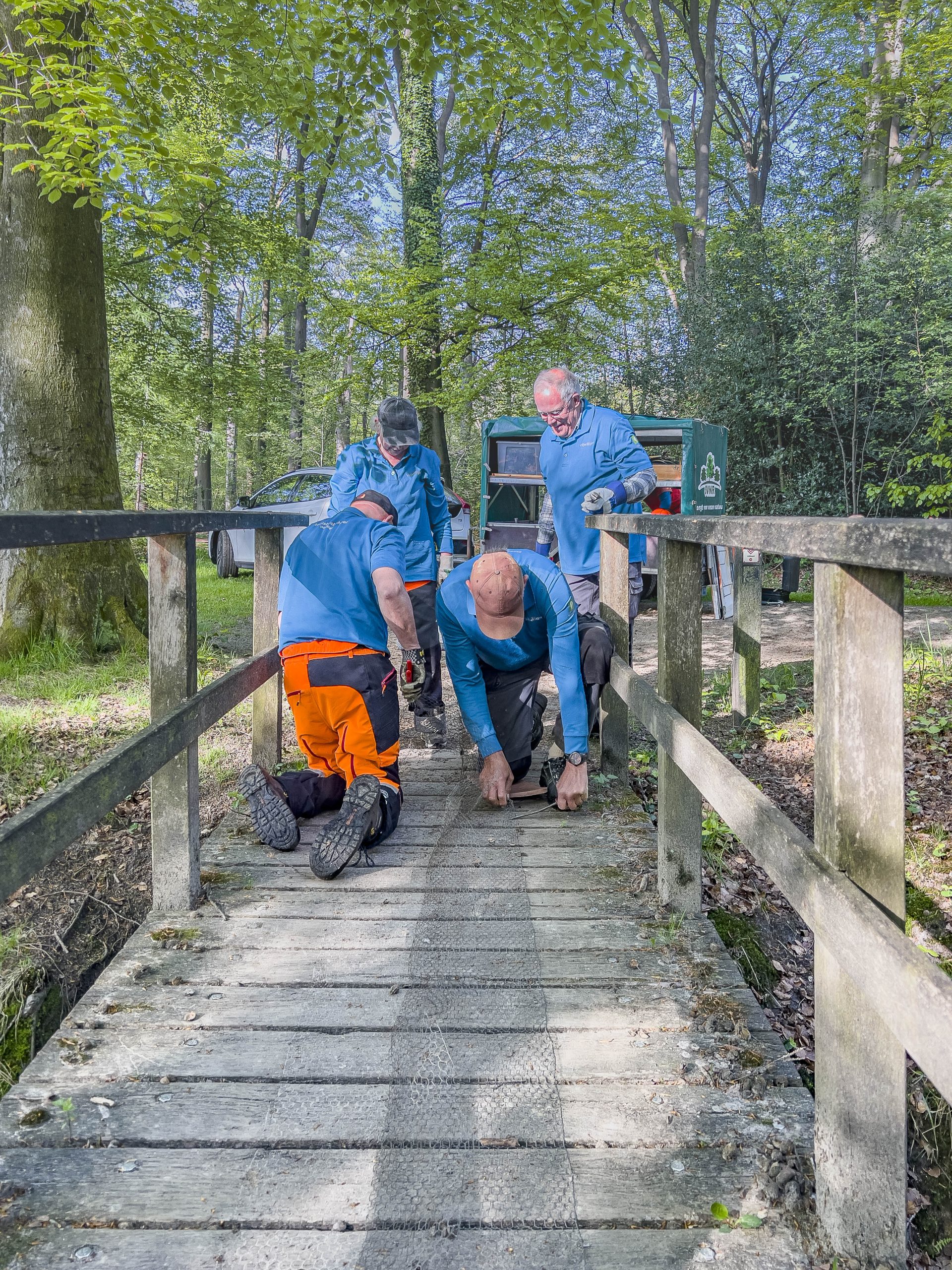 Waar zijn wij bezig 30 april 2025 18 augustus 2025 Het gaas op het bruggetje in de Meene was versleten en werd vervangen om de veiligheid en toegankelijkheid van het bruggetje te verbeteren. Het was een goed gecoördineerde actie en met vereende krachten was het slechte gaas vervangen.