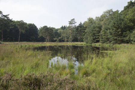 Tussen de dekzandruggen liggen een paar vennetjes gevangen. Wat diepere en ondiepere, waarvan het ondiepste bij droog weer grotendeels droog valt. Met rondom natte heide en rabat-bos.